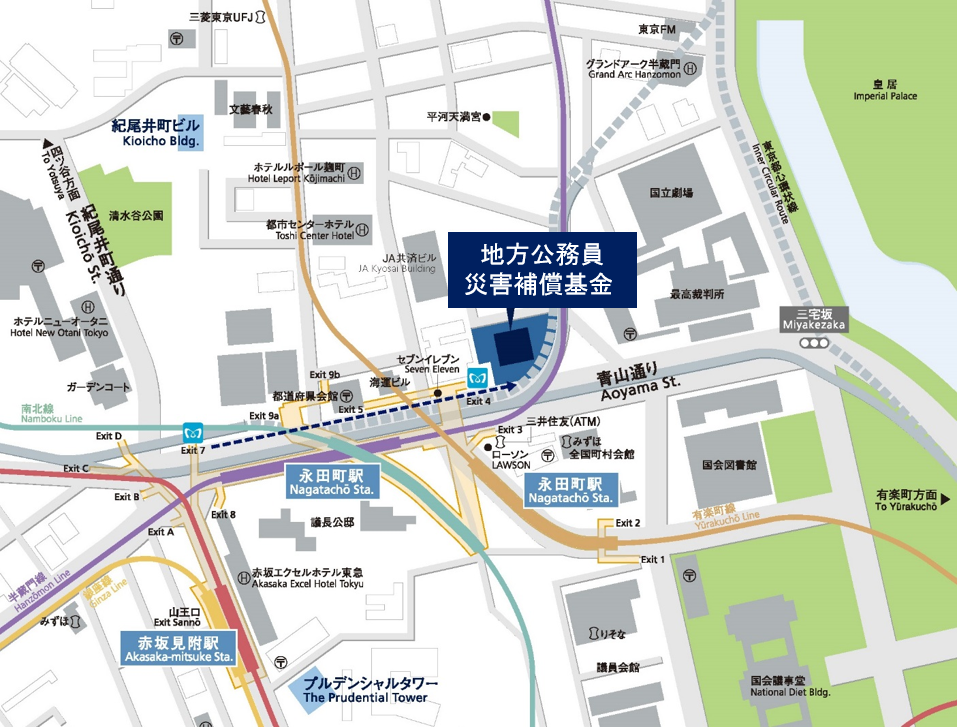地下鉄有楽町線・半蔵門線・南北線「永田町駅」4番出口徒歩約1分